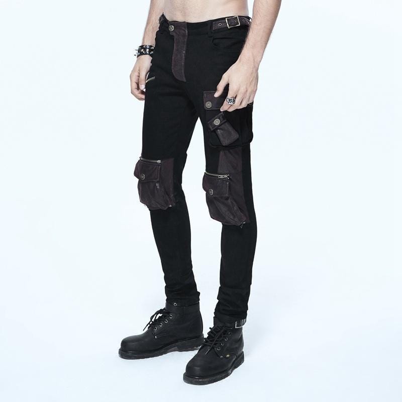 Miesten kapeat goottihousut polvitaskuilla